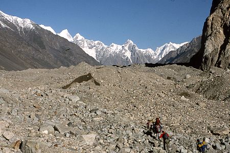 de 4000 m de hauteur encapuchonné de glace) de la rive droite du glacier de Batura