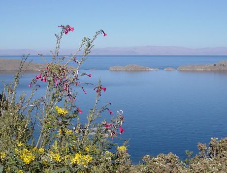 Lors du transfert depuis la Paz on peut observer des espèces caractéristiques de l'Altiplano. Au cours des excursions au niveau du lac on se trouve dans des milieux plus accidentés, mais cette étendue d'eau crée un microclimat propice à la végétation..