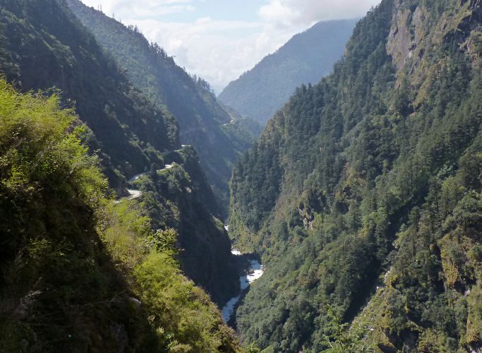 Longue descente dans la vallée de la Bhote Koshi qui devient de plus en