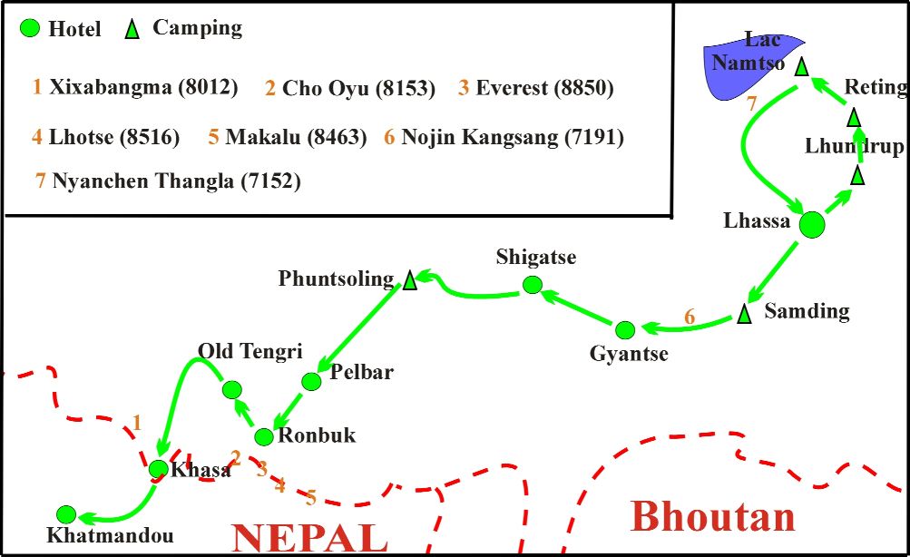le Tibet, l'orthographe des noms de sommets, de cols et de villes ainsi que les