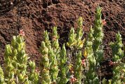 cm. Les fleurs ont une corolle rouge avec des stries plus foncées, le