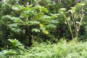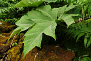 un pétiole mesurant jusqu'à 60 m et un limbe lobé de 50 à 75 cm de