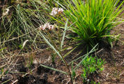 long et 5 mm de large. Les fleurs, groupées en petit nombre, sont mauves à blanchâtres. Le fruit