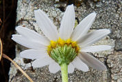 ligulées sont blanches, parfois jaunes à la base.