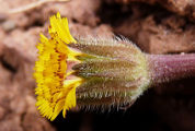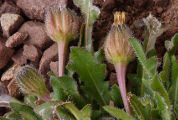 de poils. Les feuilles sont basales, lobées. Les capitules, solitaires,