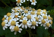 capitules, jusqu'à 2 cm de diamètre, sont groupés en corymbes denses.