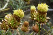 Les petits capitules sont solitaires au sommet des tiges, les bractées