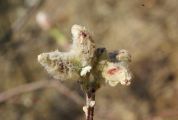 à 4 cm) se trouvent à la base des feuilles, lesquelles sont gris