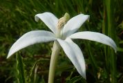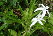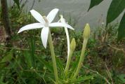 90 cm de hauteur. La fleur montre une corolle blanche avec un long tube