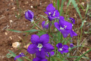 fleurs, violet foncé, à 5 lobes terminés par une petite pointe, ont un