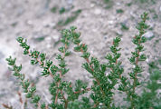 Halogeton glomeratus est ommu le long de la KKH dans la partie subdésertique de la vallée de l’Indus. Les fleurs sont absentes en été mais les feuilles crassulescentes sont caractéristiques.