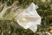 Convolvulus virgatus a des fleurs de 4 cm avec un calice très velu.