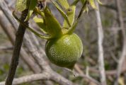 jaunâtre et mesure 1 cm de diamètre. Le fruit, subsphérique, d'un