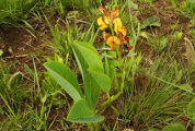 jaune foncé avec des stries rouges, l'étendart est long de 1 à 1,3 cm.