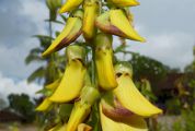 fleurs, jaunes, sont striées de lignes rouges; elles deviennent de
