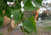 graines. Les graines sont rouges à maturité. Cet arbre est souvent