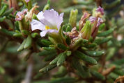 Frankenia ericifolia est un petit buisson atteignant 30 cm de hauteur. Les feuilles, aciculaires, à bord révoluté, mesurent environ 1 cm.