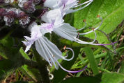 atteignant 15 x 4 cm, ponctué de glandes. Les fleurs sont groupées en