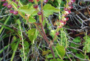 les feuilles, 1 à 3 cm de long, sont triangulaires et à marge dentée.