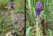 stériles bleues ou violettes avec un pedicelle de la même couleur. Au