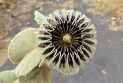 Tiges et feuilles sont verdâtres et laineuses. Les feuilles sont