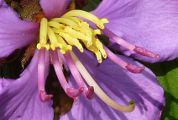 avec des anthères mauves, un connectif mauve clair se prolongeant en