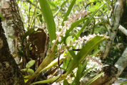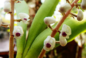 est une Orchidée épiphyte, les tiges en forme de massues portent