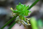 Les fleurs ont de 2 à 2,5 cm de diamètre. Les sépales, verdâtres ou