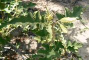 Solanum houstonii est un buisson mesurant jusqu'à 2 m de hauteur. Les tiges, sont plus ou moins armés d'épines. Les feuilles sont entières ou lobées à bord ondulé. Les fleurs, ont un