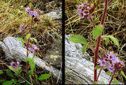 le calice, violetteou blanche. Le fruit est une capsule de 3 mm de long.