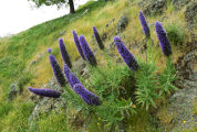 Echium candicans et un buisson
